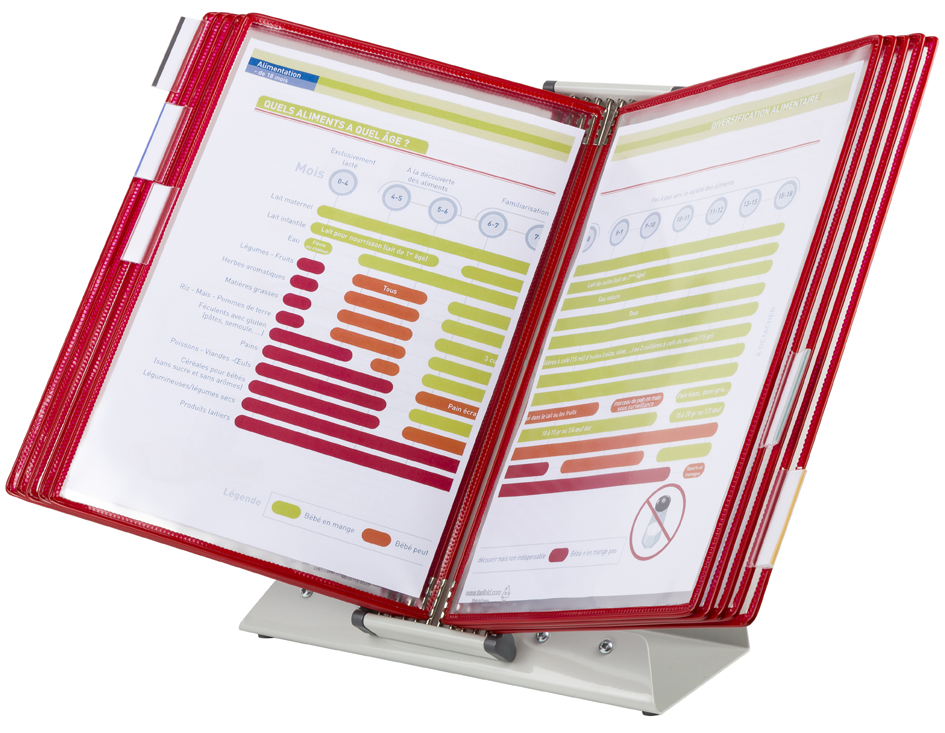 Met deze stalen presentatiewand in lichtgrijze kleur creëert u een professionele uitstraling. De metalen voet, 4 pluggers en 10 draaibare A4-tabellen in een heldere rode kleur zorgen voor een overzichtelijke organisatie. Ideaal voor het presenteren van foto’s, tekeningen of promotiemateriaal tijdens vergaderingen, beurzen of in winkels. Eenvoudig op te zetten en te verplaatsen dankzij de 5 opsteekhouders van 5 cm. Een veelzijdige oplossing voor kantoren, onderwijsinstellingen en retailers. (434103)