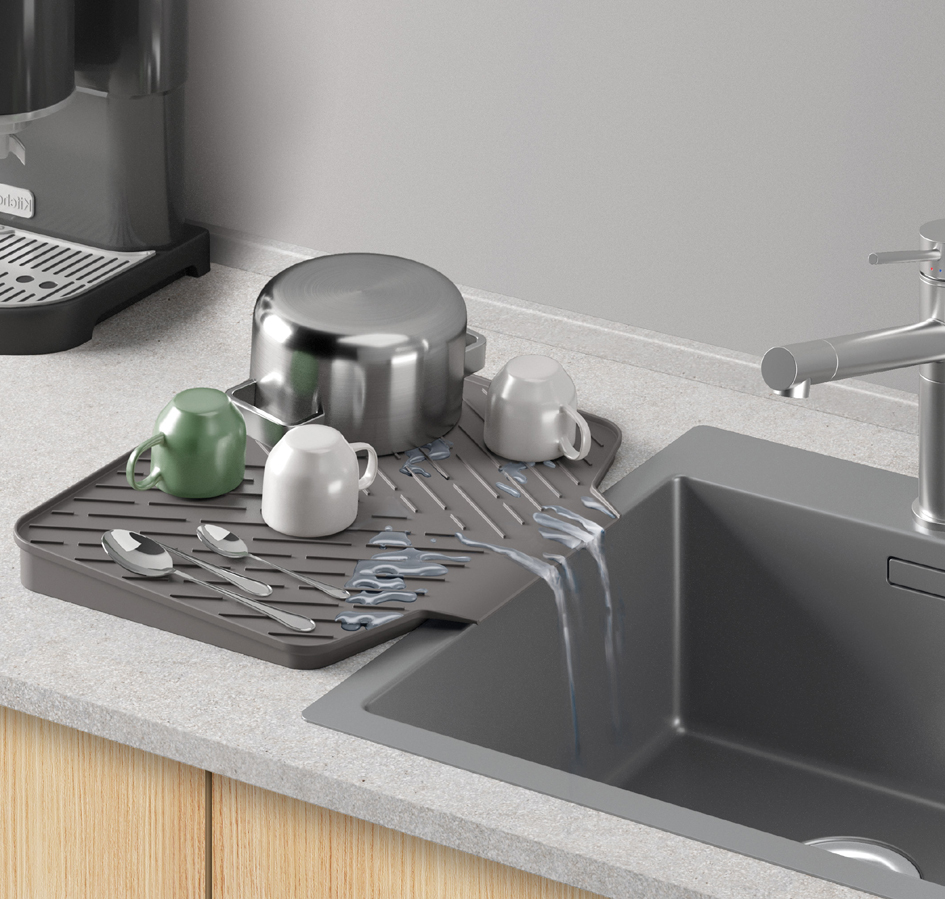 Metaltex afdruipmat Gravity-Duo rubber grijs 40x33cm