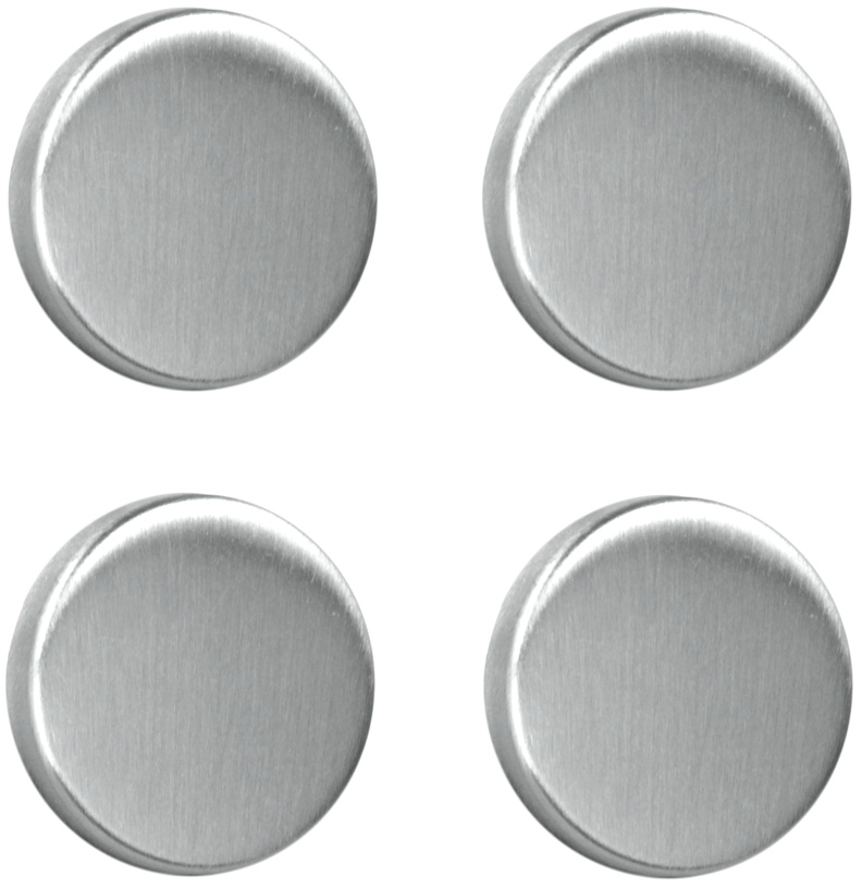 Ronde magneten van roestvrijstaal met krasonbescherming aan achterzijde. Set van 4 stuks voor bevestiging op metalen oppervlakken. Productomschrijving in het engels, Productdescription in English Stainless steel round magnets with scratch protection backing, 4 pieces included.