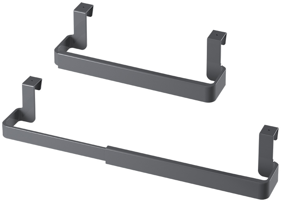 Uitschuifbare handdoekhouder van ABS-kunststof voor kastdeuren, verstelbaar van 240-400 mm, geschikt voor binnen- en buitenmontage. Productomschrijving in het engels, Productdescription in English Extendable towel holder for cabinet doors, adjustable from 240-400mm, suitable for inside/outside mounting.