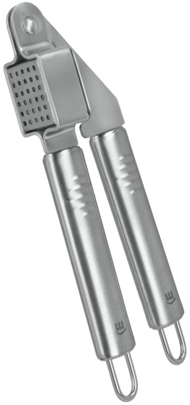 Stainless steel garlic press with exclusive grip design from the Inox series. Dishwasher safe. Dimensions: 58 x 196 x 34 mm. Perfect for everyday kitchen use.