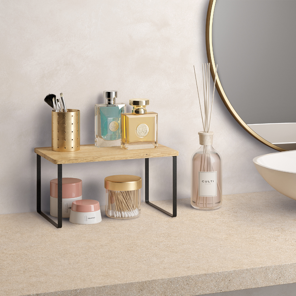 Kruidenrek met geolied acaciahout plank, antislip voetjes, industriële stijl in mat zwart. Afmetingen: 32x19x16 cm. Roestvrij en krasbestendig. Productomschrijving in het engels, Productdescription in English Spice rack with oiled acacia wood shelf, non-slip pads, industrial style matte black finish.