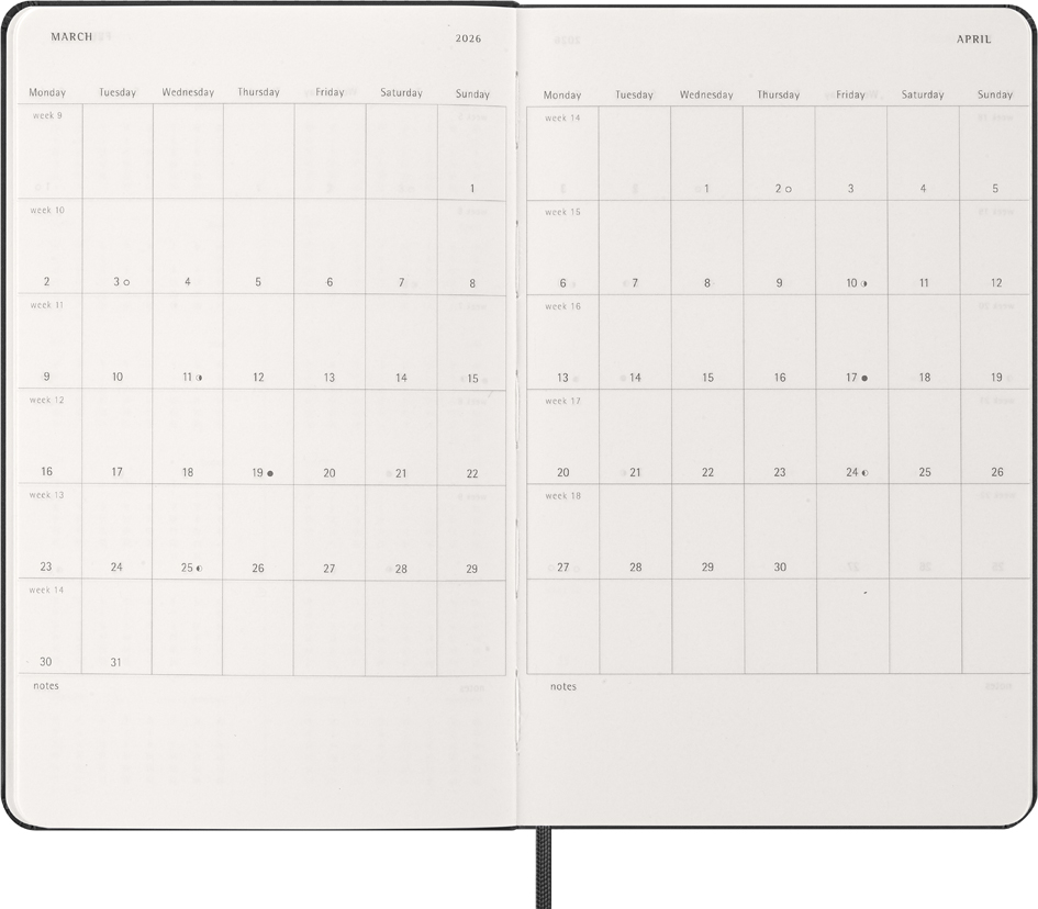 MOLESKINE Weekagenda 2026, L/A5, Harde kaft, zwart