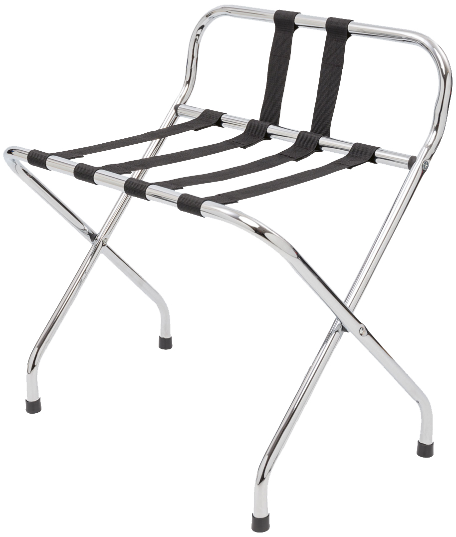 Sturdy chrome luggage rack with backrest. Foldable design with nylon straps, supporting up to 100 kg.