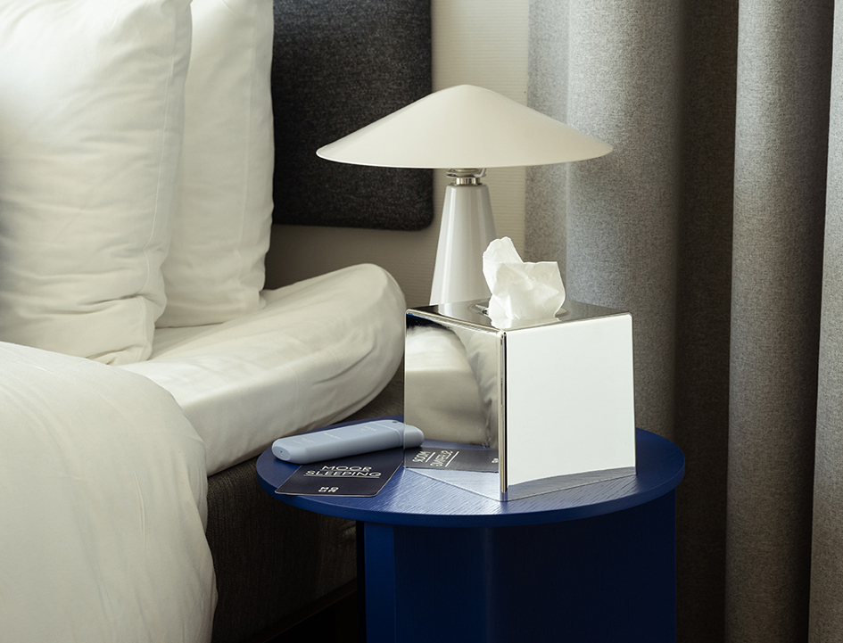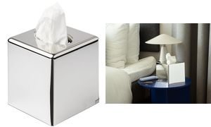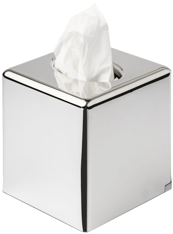 MOOR Tissues dispenser SHERYL in chroom. Stevige ABS-kunststof met chroomcoating, praktische navulopening en gemakkelijk schoon te maken. Afmetingen: 125 x 125 x 138 mm.