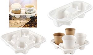 Natuurlijke bekerenhouder viervaks, van suikerriet, wit.