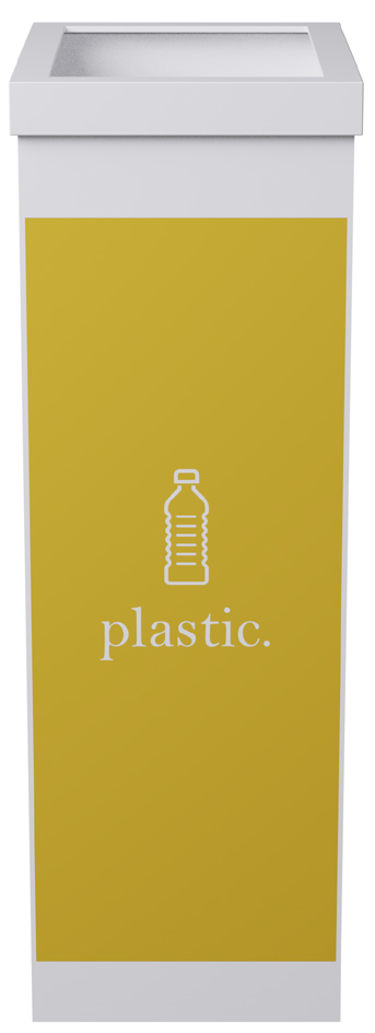 Afvalscheidingssysteem van hoogwaardig polystyreen met dubbelzijdige pictogrammen voor eenvoudige afvalsortitie. Afmetingen: 363x263x760mm, voorgemonteerd geleverd. Productomschrijving in het engels, Productdescription in English Waste separation system made of polystyrene with pictograms, 60L capacity, pre-assembled delivery.
