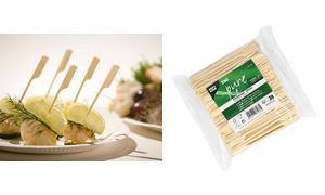 Elegante bamboe prikkers voor fingerfood en hapjes. Set van 250 stuks in praktische verpakking. Perfecte lengte voor presentatie. Productomschrijving in het engels, Productdescription in English Elegant bamboo skewers for finger food and appetizers, 250 pieces per pack