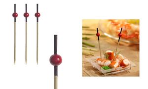 Houten cocktailprikkers met decoratieve rode parel. 250 stuks in praktische kartonnen doos. Perfect voor fingerfood en hapjes. Productomschrijving in het engels, Productdescription in English Wooden cocktail picks with red pearl decoration, 250 pieces in cardboard box.