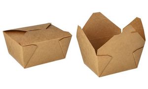 Milieuvriendelijke lunchbox van karton met PLA-coating uit hernieuwbare grondstoffen. Hittebestendig tot 100°C. Afmetingen: 130x105x65mm. Set van 50 stuks. Productomschrijving in het engels, Productdescription in English Eco-friendly cardboard lunch box with PLA coating, heat resistant to 100°C, pack of 50 pieces.