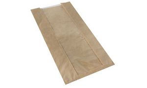 Brown kraft paper bags with PLA viewing panel. Prevents condensation. Pack of 1,000 pieces. Size: 470 x 200 x 90 mm.
