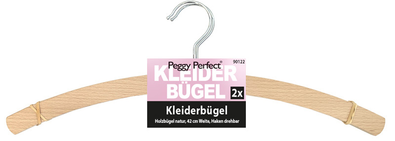 Peggy Perfect houten kledinghangers zonder steun, naturel, 2 stuks