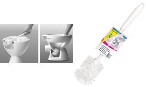 Toiletborstel met PP-borstels en gepatenteerde randreiniging. Lengte 40cm, witte kunststof uitvoering voor effectieve WC-reiniging. Productomschrijving in het engels, Productdescription in English White plastic toilet brush with PP bristles and patented rim cleaner, 40cm length.