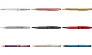 Metalen balpen met draaimechanisme en comfortabele grip. Gelakte behuizing met zwarte clip en punt, inclusief blauwe vulling. Productomschrijving in het engels, Productdescription in English Metal ballpoint pen with twist mechanism, lacquered body, black clip and blue refill included.