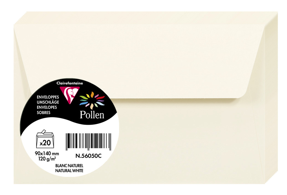 Clairefontaine Pollen enveloppen 90×140 mm naturwit, 20 stuks