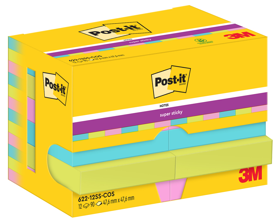 Post-it zelfklevende notitieblokjes super sticky, 47,6 x 47,6 mm