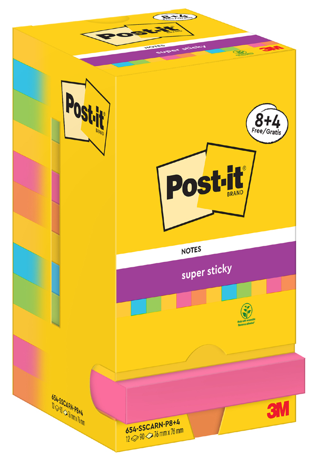 Post-it Zelfklevende notitieblokjes super sticky, 76 x 76 mm, 12 blokken