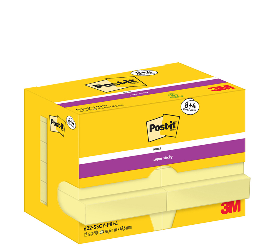 Home » Winkel » Post-it Zelfklevende notitieblokjes super sticky, geel, 47,6 x 47,6 mm, 12 blokken