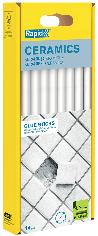 Rapid lijmpatronen keramiek wit, 12 mm diameter, 190 mm lang