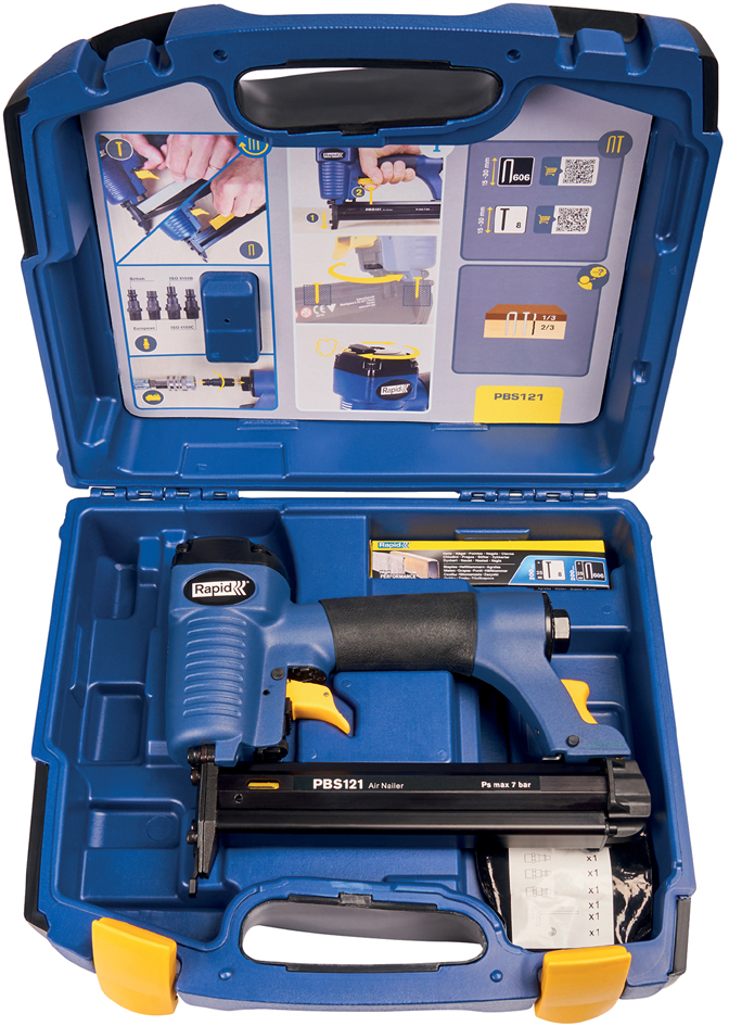 Rapid perslucht nietmachine/tacker PBS121 blauw/geel in koffer