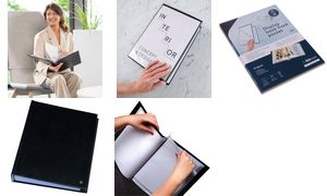 Professional A4 display book with 10 crystal-clear document sleeves. Textured exterior. Durable binding system for secure storage.