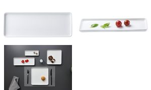 Rechthoekige porseleinen schaal met rand, vaatwasserbestendig. Verkocht per 6 stuks, ideaal voor presentatie van voorgerechten. Productomschrijving in het engels, Productdescription in English Rectangular porcelain platter with rim, dishwasher safe, sold in sets of 6 pieces.