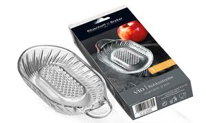 Glasrasp van stevig persglas, vaatwasmachinebestendig, smaakvrij en nikkelvrij. Ideaal voor appels, peren, wortels en knoflook. Productomschrijving in het engels, Productdescription in English Glass grater made from sturdy pressed glass, dishwasher safe, ideal for fruits and vegetables.
