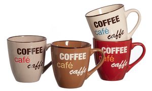Keramische koffiemok van 390 ml met decoratief design. Vaatwasserbestendig en 11 cm hoog. Verpakt per 8 stuks. Productomschrijving in het engels, Productdescription in English Ceramic coffee mug 390ml with decorative design, dishwasher safe, height 11cm.