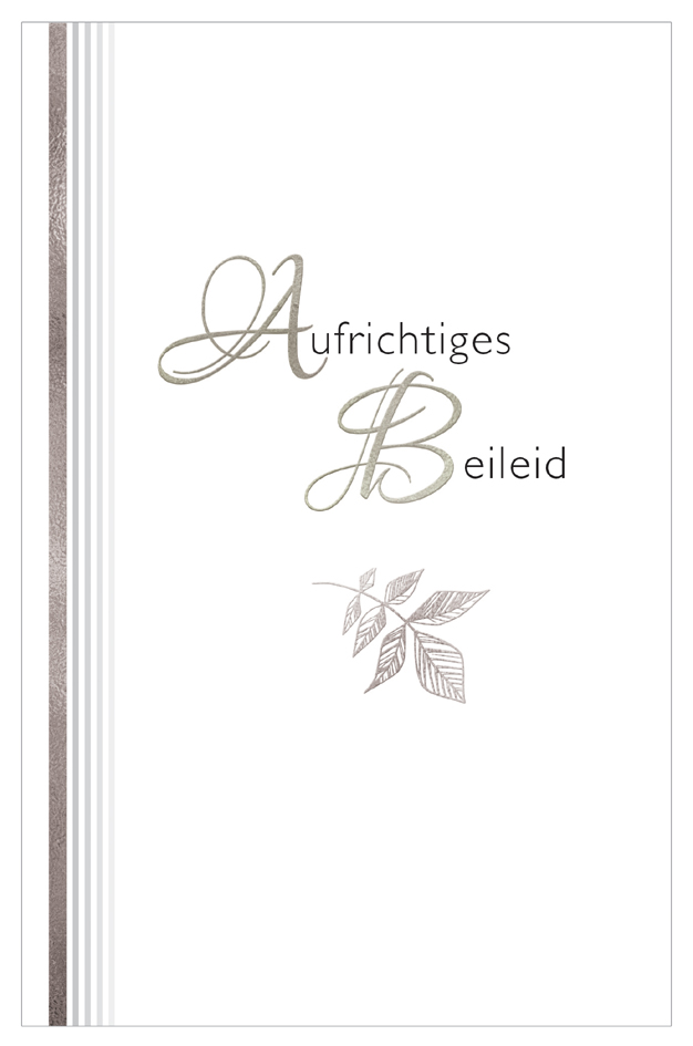 Stijlvolle rouwkaart met foliedruk, afmeting 110 x 170 mm en bijgevoegde witte envelop. Uitstekende kwaliteit voor een waardig afscheid. Ideale condoleancekaart om uw oprechte deelneming te betuigen. Subtiele vormgeving met stijlvolle foliedruk. Product 40056067.