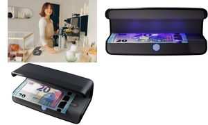 Compacte valsgelddetector voor alle valuta. Controleert UV-kenmerken, watermerken en microprints. Inclusief USB-C kabel en adapter. Ideaal voor winkeliers en kantoren.