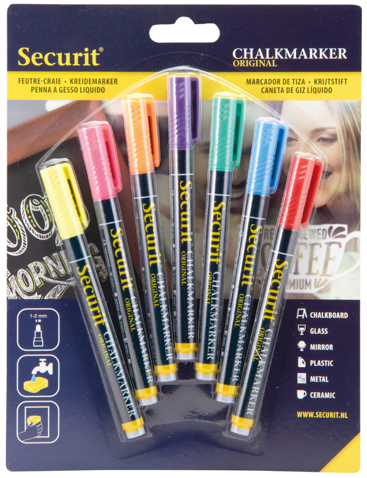 Securit krijtmarkers set, 7 stuks, verschillende kleuren, 1-2mm punt