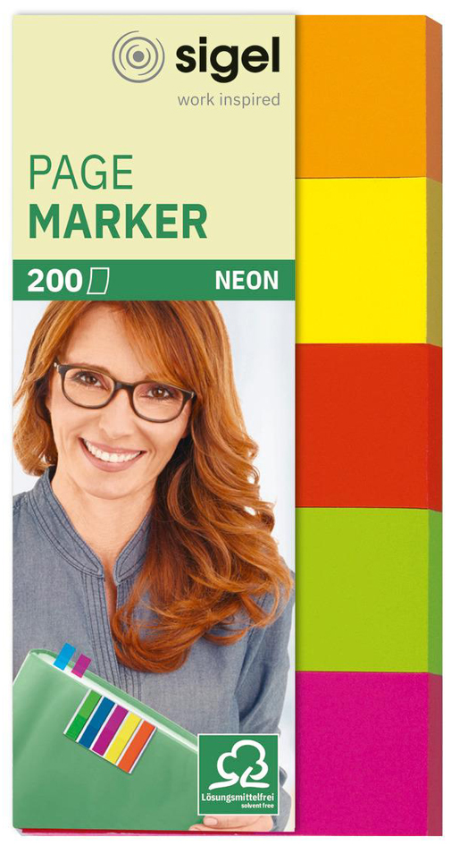 Sigel neon haftnotities 50 x 20 mm, 200 stuks in handige pocket