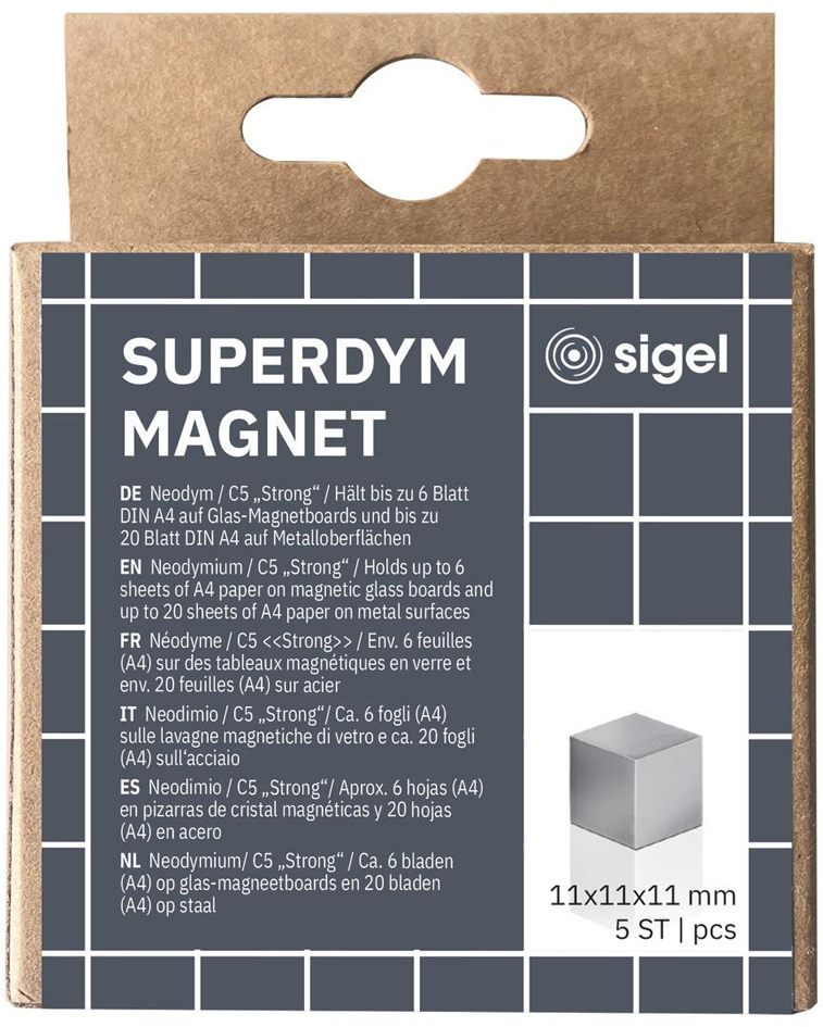Sigel Neodymium kubusmagneten ‘Strong’ C5, set van 5, zilver