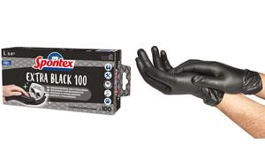 Zwarte vinyl handschoenen, maat L. Hypoallergeen, latexvrij en poedervrij. Weerbestendig met hoog draagcomfort. Geschikt voor huishouden, tuin en kluswerk. Inhoud: 100 stuks in dispenserdoos. Productomschrijving in het engels, Productdescription in English Black vinyl gloves size L, hypoallergenic and latex-free, 100 pieces dispenser box.