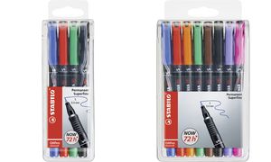 Permanente markers met 1,0 mm lijnbreedte, antislip grip en clip. Set van 8 kleuren in kunststof etui. Productomschrijving in het engels, Productdescription in English Permanent marker set with 1.0mm line width, anti-slip grip, 8 colors in plastic case.