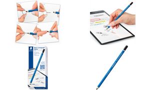 STAEDTLER Mars Lumograph digitale stylus gemaakt van gerecycled hout. Zeshoekig design met EMR-technologie, 0,7 mm punt. Geen opladen nodig. Inclusief 5 reservepunten.