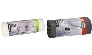 Vuilniszakken 60L met lavendelgeur, LDPE-folie 17my dik, sterrenplooien voor optimale pasvorm. Rol van 20 zakken. Productomschrijving in het engels, Productdescription in English Scented garbage bags 60L with lavender fragrance, LDPE film, star folds, roll of 20 pieces.