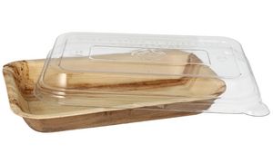 Duurzame bakjes van 100% palmblad zonder chemische toevoegingen. Deksel van gerecycled PET, geurloos en waterdicht. 10 stuks per verpakking. Productomschrijving in het engels, Productdescription in English Sustainable palm leaf containers with recycled PET lids, odorless and waterproof, 10 pieces included.