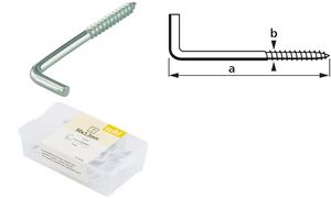 Rechte schroefhaken van verzinkt staal met houtschroefdraad. Geleverd in handige kunststof doos met 25 stuks. Productomschrijving in het engels, Productdescription in English Galvanized steel screw hooks with wood thread, straight design, supplied in plastic box of 25 pieces.