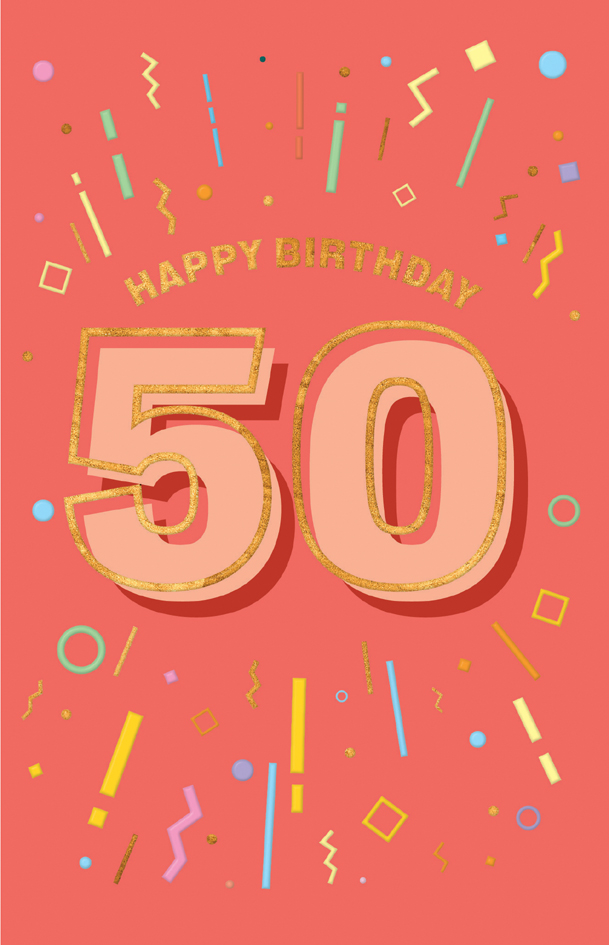 Elegant 50th birthday card with foil embossing. White design, 120 x 170 mm, envelope included. Perfect celebration gift.