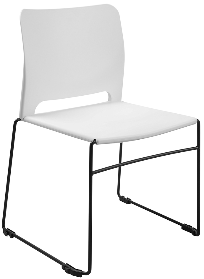Comfortable visitor chair with ergonomic plastic seat and backrest. Black steel skid frame (Ø 18 mm), stackable, without armrests. Dimensions: (W)440 x (D)410 x (H)430 mm.