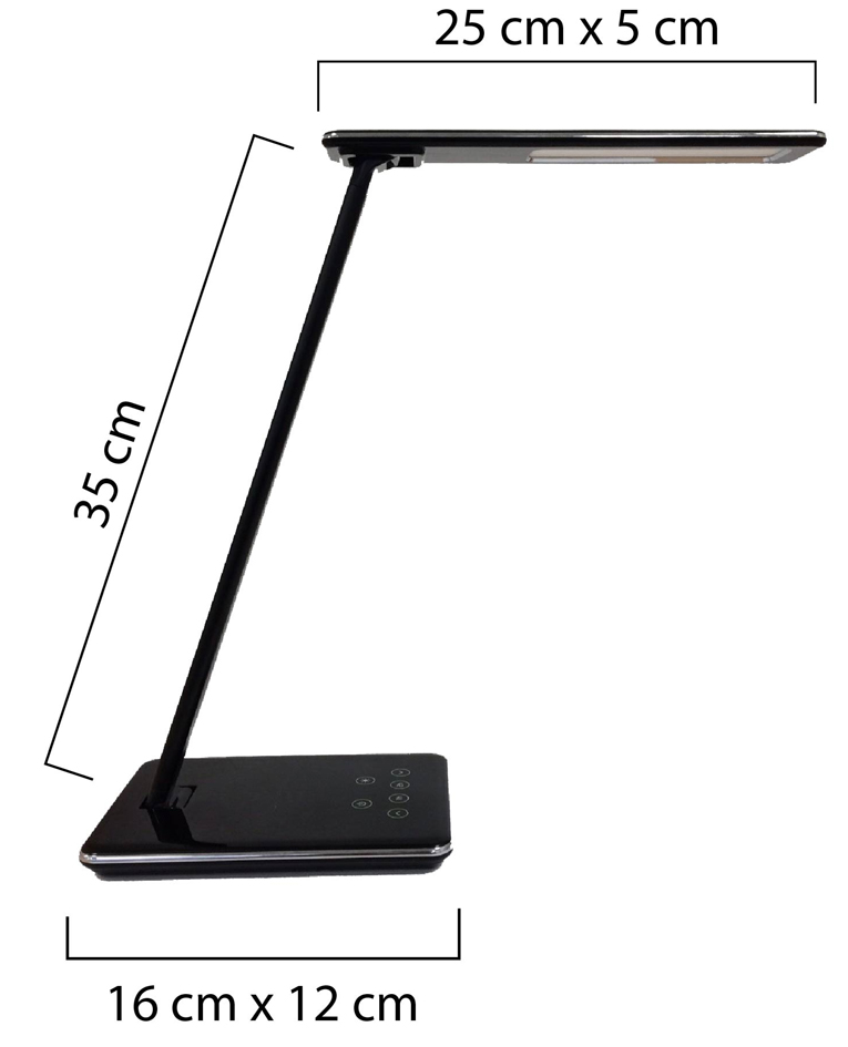 Dimbare LED-bureaulamp met USB-laadstation, 515 lumen, verstelbare kleurtemperatur 2800-5600K, aluminium arm en ABS kunststof basis. Productomschrijving in het engels, Productdescription in English Dimmable LED desk lamp with USB charging station, 515 lumens, adjustable color temperature.