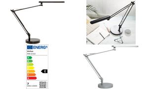 LED bureaulamp 6,8W, 665 lumen, warmwit 3000K, verstelbare armen, universele klem en voet, schakelaar op lampkop. Productomschrijving in het engels, Productdescription in English LED desk lamp with adjustable arms, universal clamp and base, warm white light.