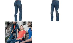 Stevige en functionele werkbroek met 65% polyester en 35% katoen (245g/m²). Voorzien van een gepatenteerd flexibel kruis, ventilatie-inzetten met stretch aan de achterzijde van de bovenbenen, kniestukken, geïntegreerde gereedschapstas en reflecterende details voor extra zichtbaarheid. Stijlvol en comfortabel voor zware klussen. Artikelnummer: 7429.