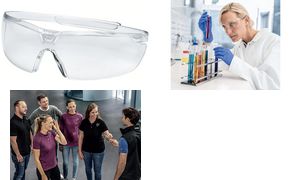 Randloze veiligheidsbril met flexibele poten en supravision coating. Innovatief design met extra zijbescherming, UV400 bescherming, slechts 19 gram. Productomschrijving in het engels, Productdescription in English Frameless safety glasses with flexible temples, supravision coating and UV400 protection, weighs only 19g.