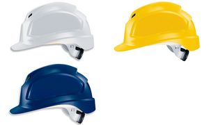 PE veiligheidshelm met 3 ventilatieopeningen en draairegelingssysteem. Sportief design, optimale pasvorm en comfort. Gewicht 430g. Productomschrijving in het engels, Productdescription in English PE safety helmet with ventilation openings, adjustment system, sporty design and comfortable fit.