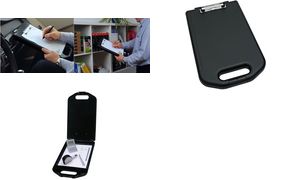 Stevig klembord met praktisch opbergvak en handgreep. Gemaakt van onbreekbaar kunststof. Biedt veel ruimte voor documenten, pennen en rekenmachine.