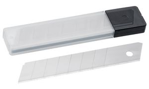 Afbreekbare mesjes in koker. Set van 10 stuks. Geschikt voor standaard stanleymessen met 18 mm breedte. Productomschrijving in het engels, Productdescription in English Snap-off blades in dispenser, pack of 10 pieces for 18mm utility knives.