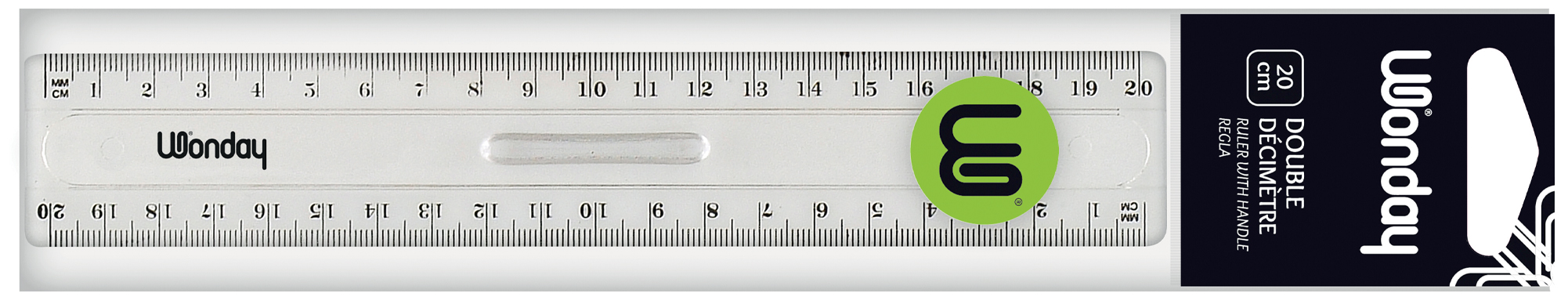 Transparante kunststof liniaal van 200 mm met dubbele millimeterschaal en handige plastic handgreep voor gemakkelijk gebruik. Productomschrijving in het engels, Productdescription in English Transparent plastic ruler 200mm with double millimeter scale and convenient handle.