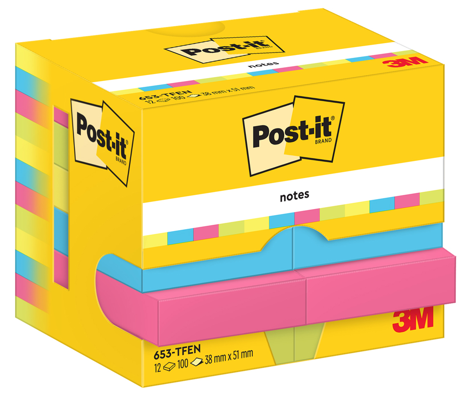 Zelfklevende notitieblokken, 51 x 38 mm, energieke kleuren